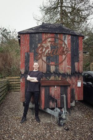Det mobile studie er bygget af Jonas Hallberg fra Tiny Office, og stod færdig på hjul i 2019, klar til at få etableret teknikken. Et råt og i øjenfaldende udtryk går igennem indretning og look af vognen, både udvendig og indvendig og et meget bevist valg fra Anders side. Det mobile studie udstråler ren rock ‘roll.