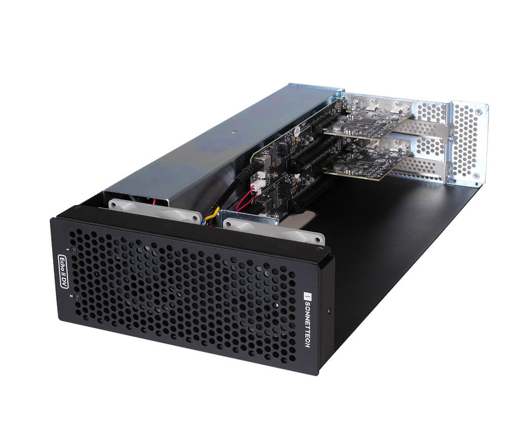 Selve Echo II DV T5-modulet fylder kun halvdelen af kabinettet, hvilket giver plads til yderligere Sonnet-moduler, hvis systemet skal udvides over tid.