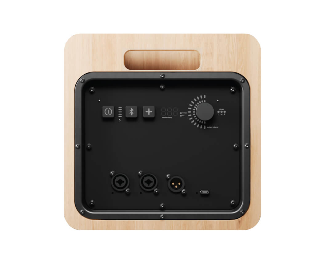 Kabinet i FSC-certificeret krydsfiner og det karakteristiske SOWA-design gør, at højttaleren visuelt passer ind i moderne kontor- og eventmiljøer.