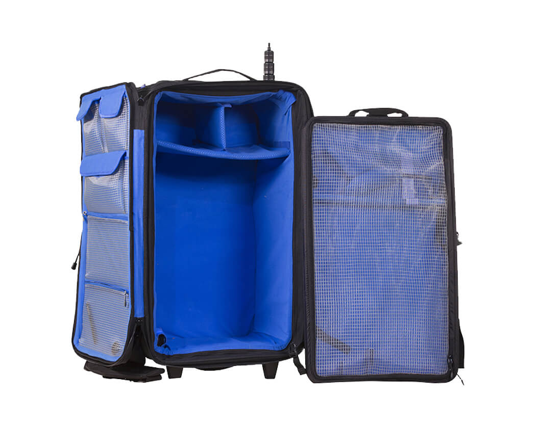 Med indbygget trolleyhåndtag, robuste hjul og fleksibel indretning fungerer OR-48 både som transportløsning og som en praktisk base for arbejdet på location.