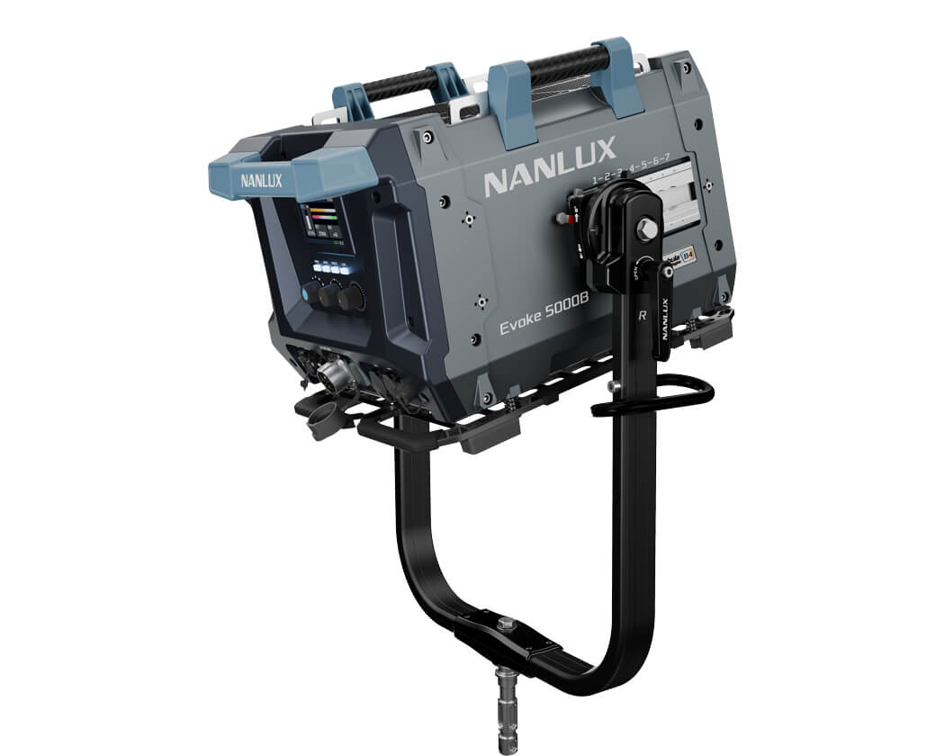 Evoke 5000B benytter Nanlux’ eget NL-mount-system, som sikrer hurtig og stabil montering af tilbehør – uden at gå på kompromis med belastning eller balance.