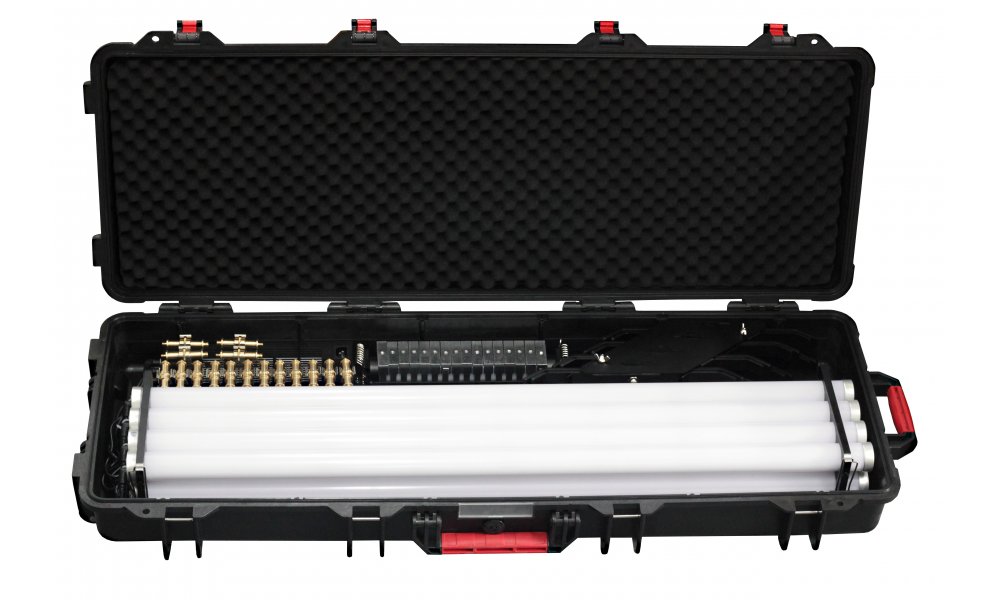 - Formskåret flightcase med indbygget opladestation samt kablet DMX tilslutning