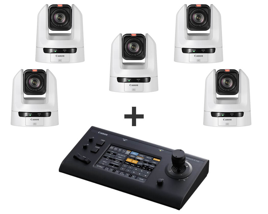 Med denne bundle får du fem Canon CR-N100 PTZ kameraer og en Canon RC-IP100 controller til halv pris. Det betyder, at du kan samle styringen i én enhed og samtidig holde prisen nede.