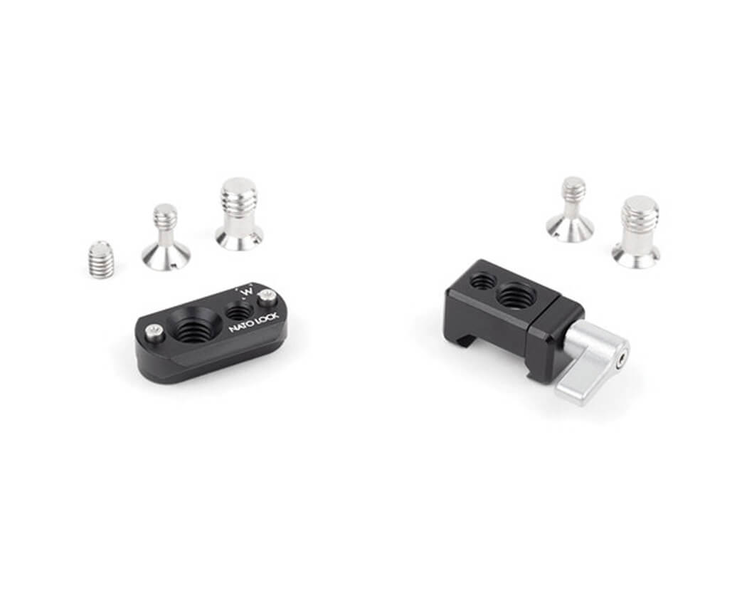 NATO Lock Kit kan monteres på cages, top plates og andre rigkomponenter med passende monteringspunkter. Det gør det muligt at integrere NATO systemet i mange forskellige kamera setups.