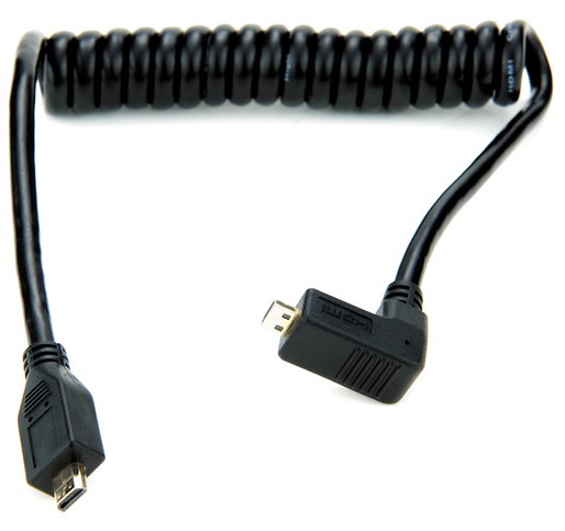 Atomos coiled right-angle micro HDMI to micro HDMI cable (30-45cm)